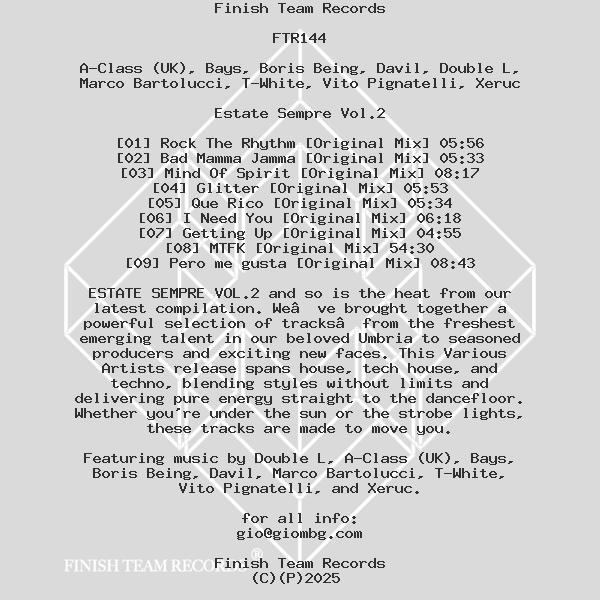 ESTATE SEMPRE VOL.2 and so is the heat from our latest compilation. We’ve brought together a powerful selection of tracks—from the freshest emerging talent in our beloved Umbria to seasoned producers and exciting new faces. This Various Artists release spans house, tech house, and techno, blending styles without limits and delivering pure energy straight to the dancefloor. Whether you're under the sun or the strobe lights, these tracks are made to move you.